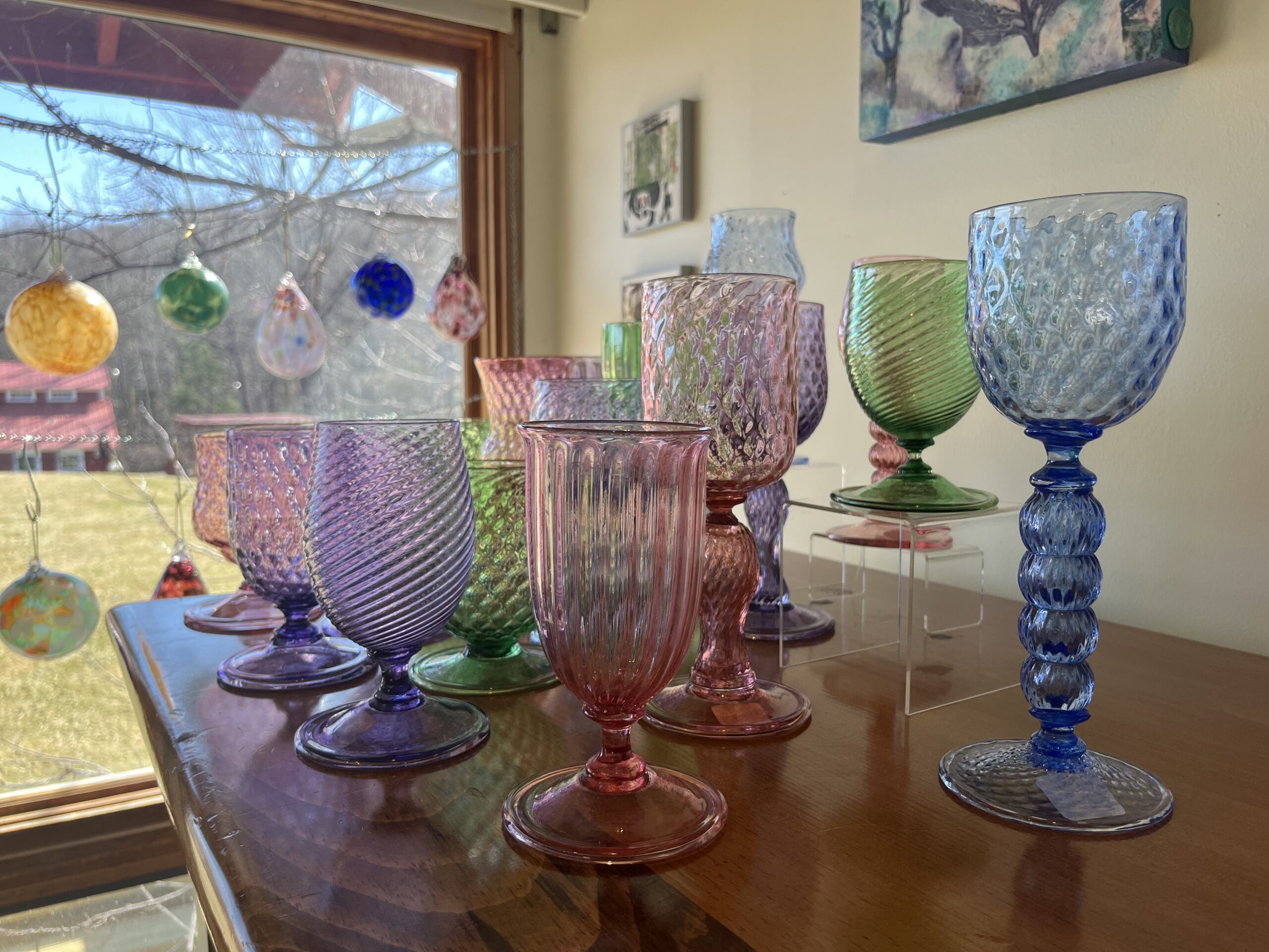 Other equipment includes the following: a pipe cooler and warmer, 24” lap wheel, blowpipes, a ranger oxy/propane torch, a fluffy torch, three small bernzomatic torches, tweezers, trim shears, diamond shears, several types of jacks, shears, calipers, cane cutters, a cane plate, and assorted optic molds. All studios are supplied with hand sanitizer, KN95 masks, nitrile gloves and anti-bacterial wipes.