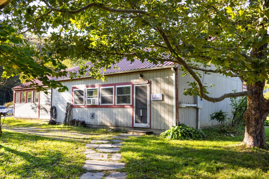 Located adjacent to the glassblowing studio and just a few steps from the dining hall, the woodshop studio accommodates 6 students and an instructor with plenty of room to move around, plus a spacious grassy area with a picnic table right out front that is nice for sanding on sunny days. Woodworking classes have a maximum of 6 students.